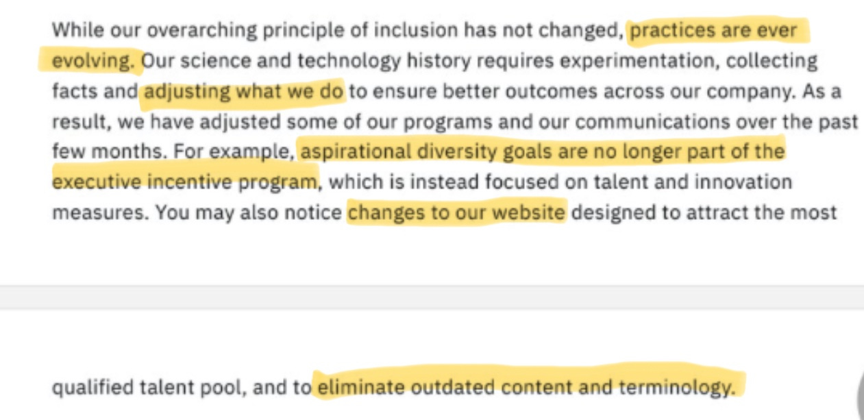 But, now that a little time has passed, let’s take a look inside at IBM and see how their “ditching DEI” change is actually going.