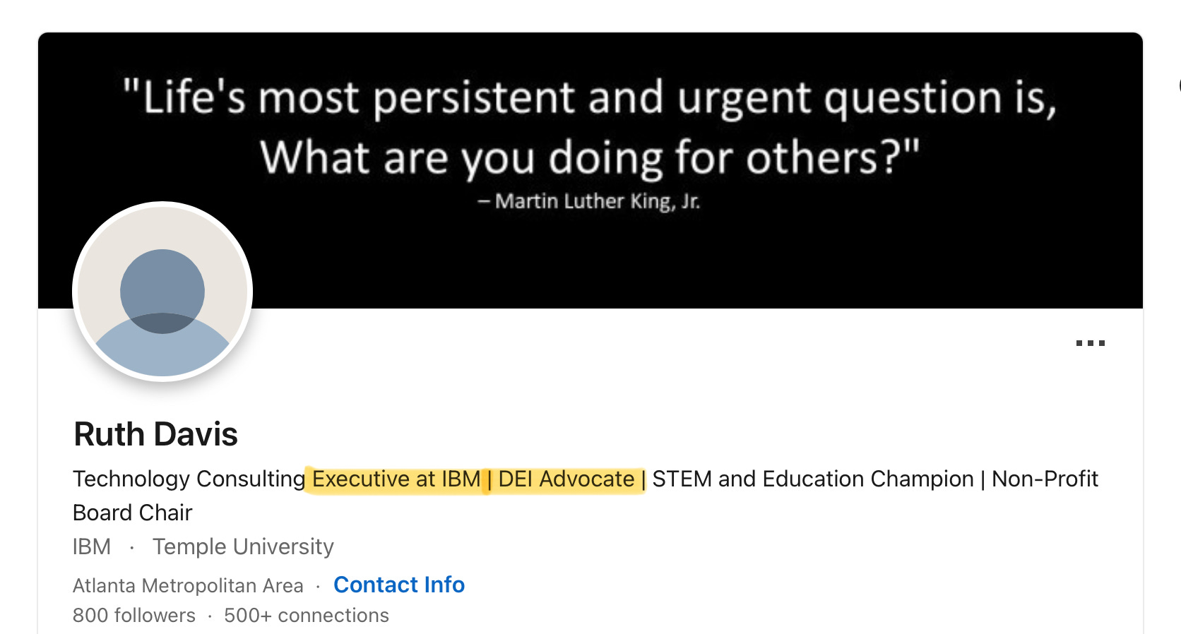 We gain these insights thanks to Ruth Davis — an IBM Executive and who currently identifies as a “DEI Advocate”.