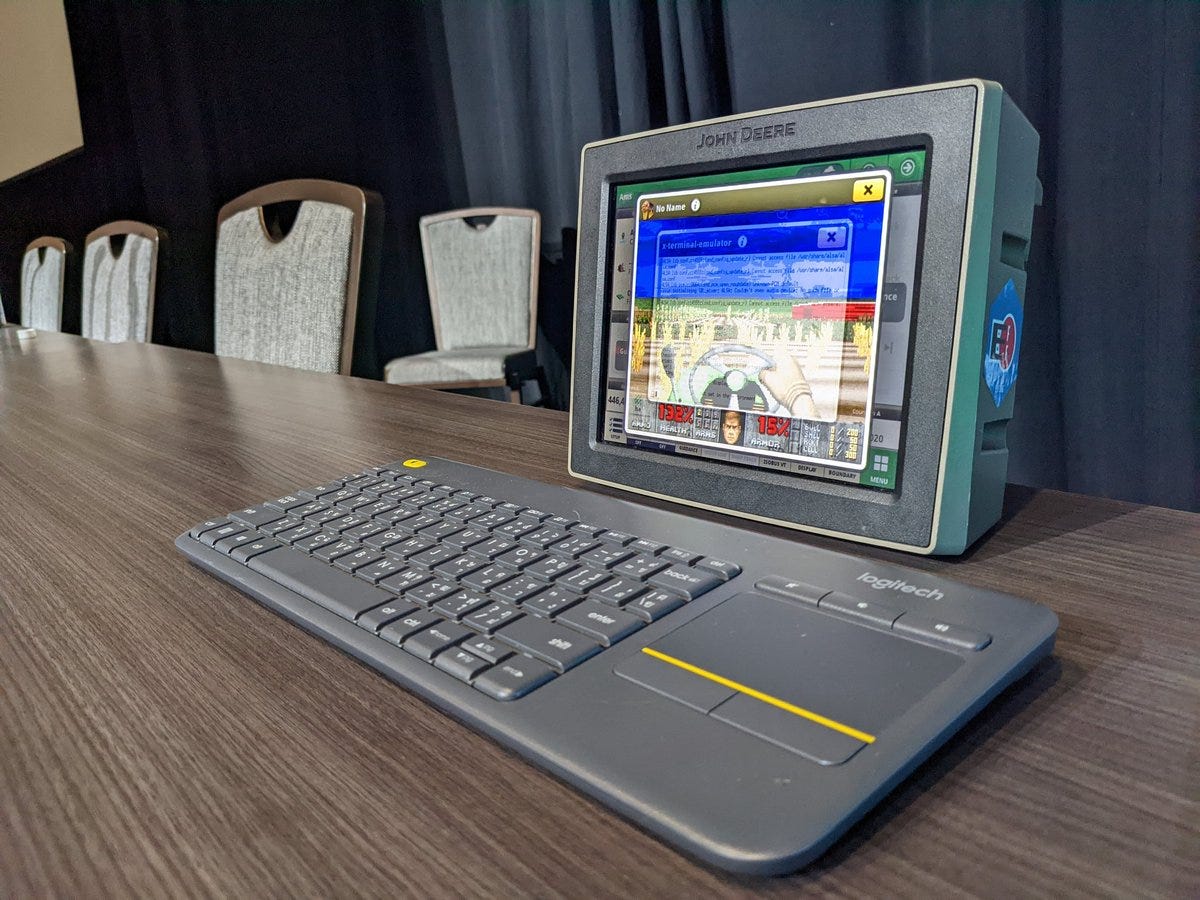 A man (known as “SickCodes” has hacked a John Deere tractor computer… and loaded it up with a modified version of DOOM… which has a tractor riding / corn farming theme. Which is adorable.