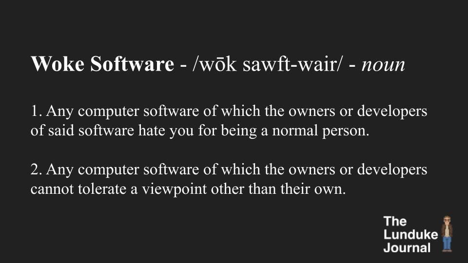 What, exactly, is “Woke Software”? Glad you asked. Because I’ve defined it.