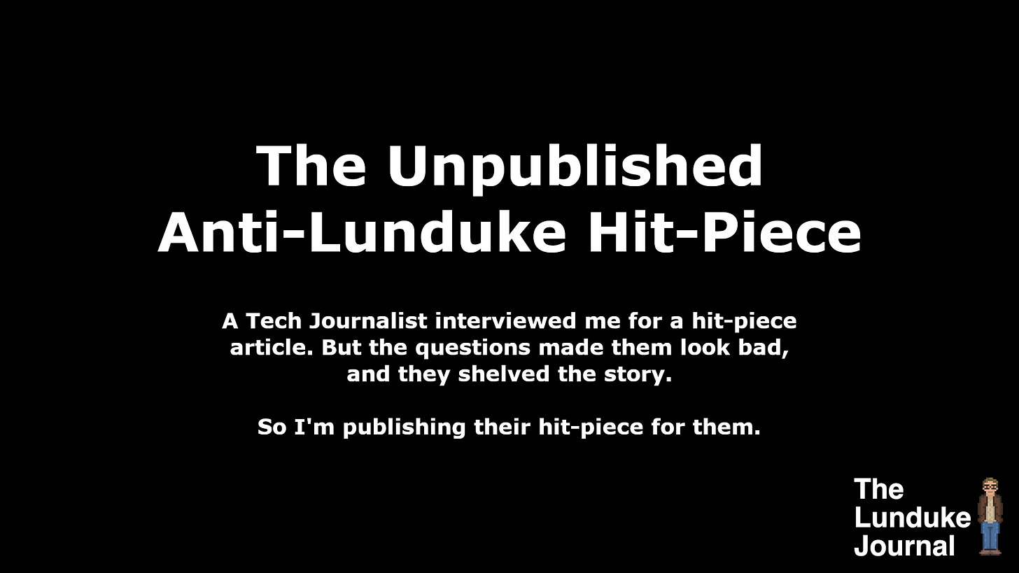 A Tech Journalist interviewed me for a hit-piece article. But the questions made them look bad, and they shelved the story. So I'm publishing their hit-piece for them.
